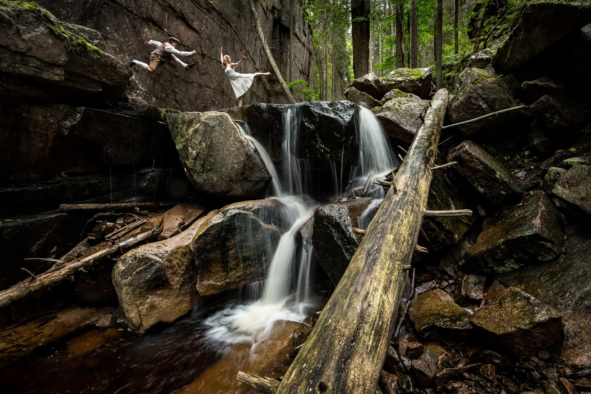 Drammen er ikke bare en urban godbit for fotografering til prosjektet "Drammen i dans og musikk". Det er i aller høyeste grad også mye herlig og fotogen natur. To spreke dansere med en nedlesset fotograf på slep, behøver ikke gå lenger enn et stykke opp i Kjøsterudjuvet for å vise hva de er gode for. Den store utfordringen, rent fotografisk, er å skape ro, komposisjon og dybde i et kaos av "rot". Modeller: Magnus Alexander Hals og Tonje Martine Lorgen Kirkholdt