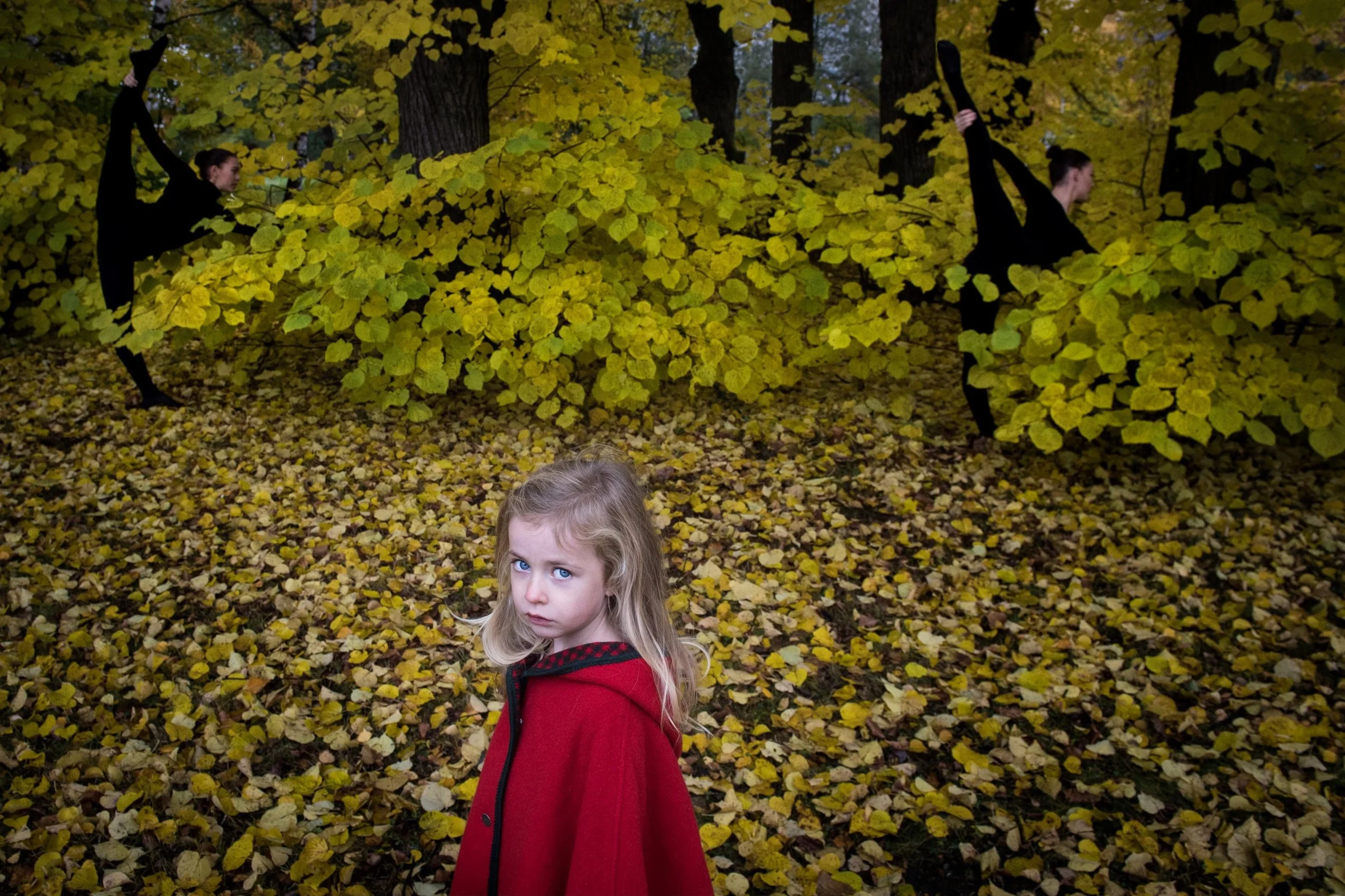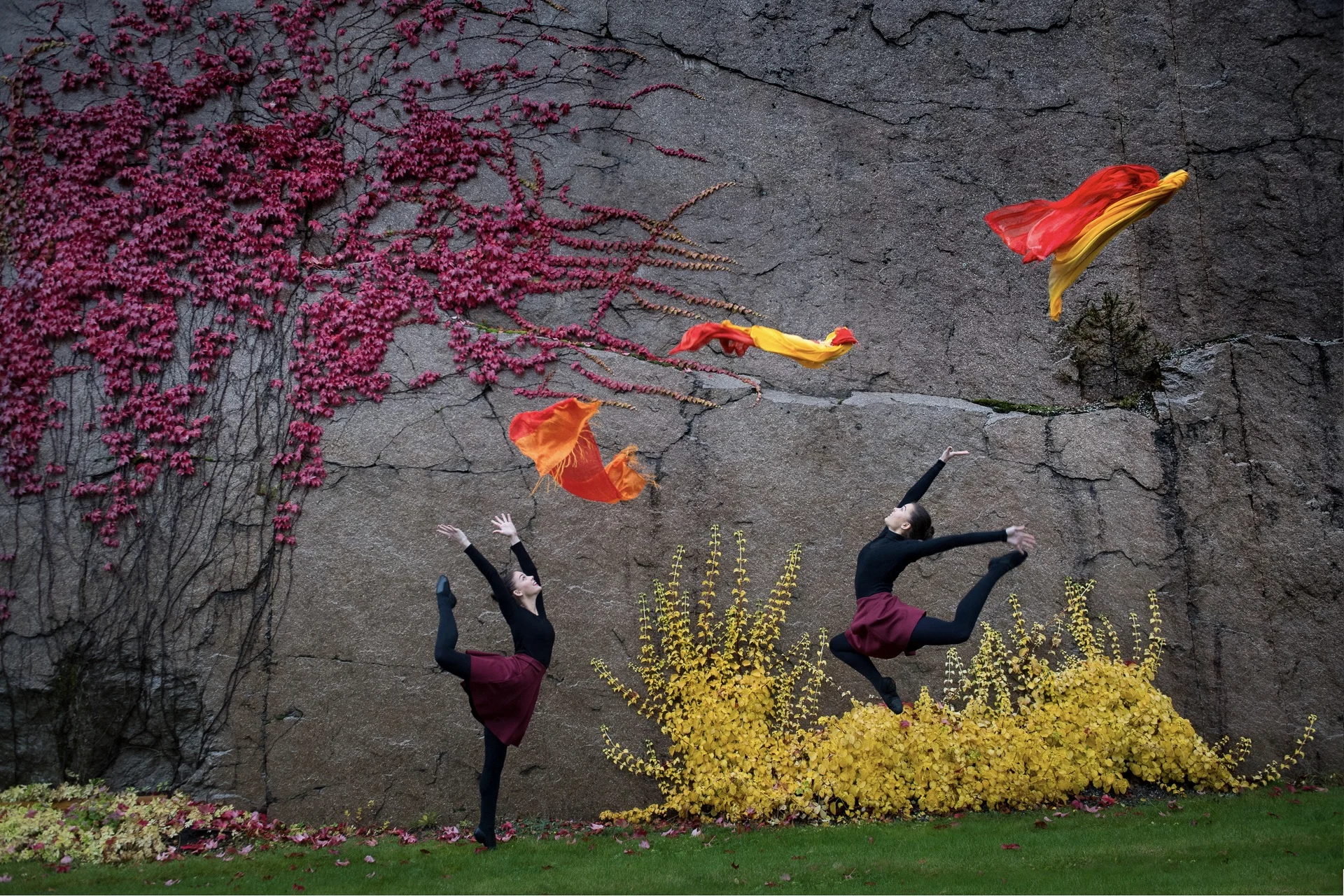 Når fotografen kjører forbi denne lille oasen i Bacheparken i Drammen, da begynner hjernen å kverne! Da må det tenkes komplementærfarger, oppbygging og komposisjon. Det er halve jobben og halve moroa. Når det skal være med barn gjelder det å gjøre det hele litt lystbetont, og det var stas å se de dyktige danserne. Hun så mye på dem, så det blikket jeg fikk i kamera varte ikke lenge, men lenge nok, og det var nok! Fotografen tenker med litt vemod på hvordan et slikt bilde tar seg ut på en liten telefon, men det må stå sin prøve. Noen ganger er det stas om det må ses en ekstra liten gang for å se alt som skjer. Modeller: Thale Tandberg, Camilla Ulven Børsum, Susanne Ulven Børsum. I/80, f 8, 1600 iso, Nikon D5