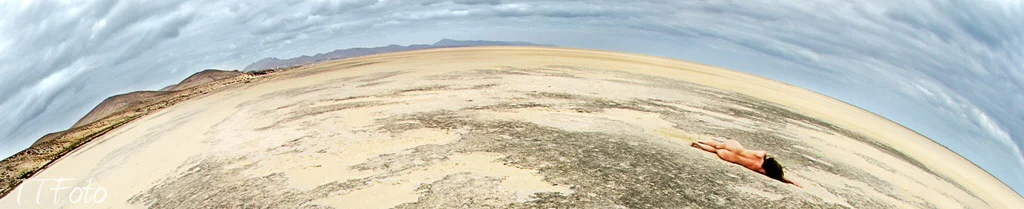 Dette bildet er tatt på Fuerteventura med en fisheye, ekstrem vidvinkel, for å få denne følelsen av rund jordklode. Kroppingen gjør sitt til at det ikke bare virker rundt hele veien og det blir en typisk fisheye virkning. Det gjelder og alltid prøve å tenke litt annerledes.