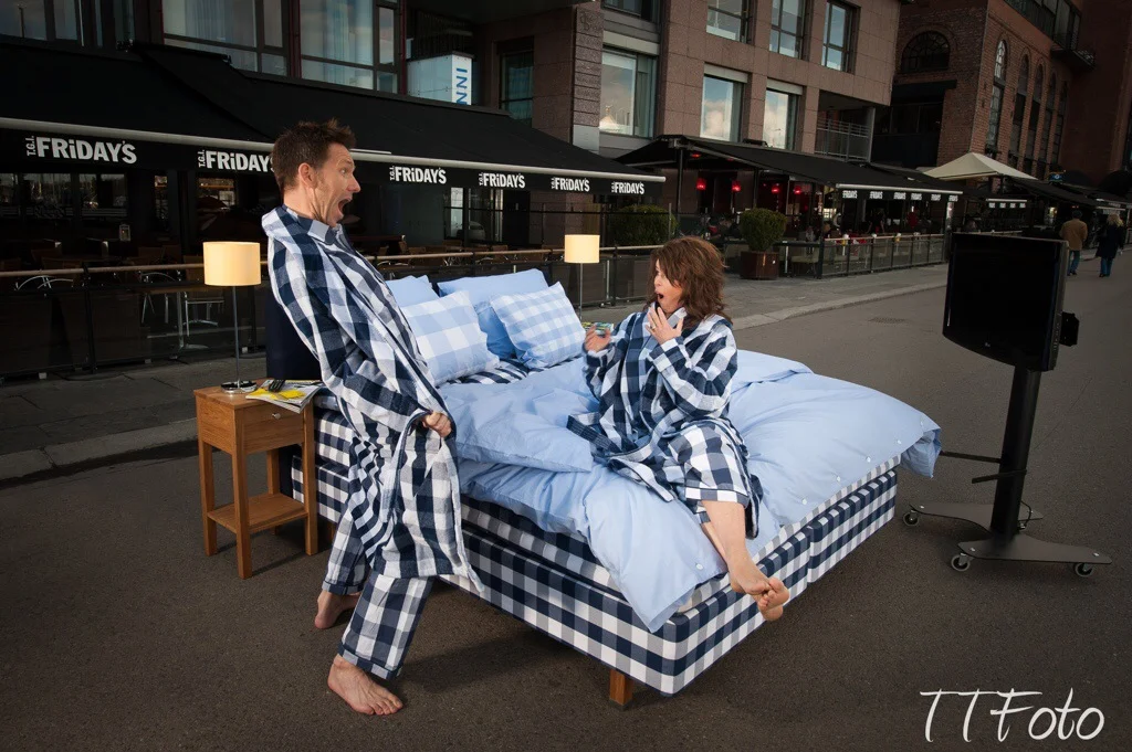 Slik endte det! Det siste bildet før fotografen måtte gripe inn ): Altså mye morsomt, uforutsigbart og morsomt i en fotografisk liv. Det er også mye jobb før selve fotograferingen begynner; planlegging fra reklamebyråets side, make up artist for modellene og rigging av rekvisitter og fotoutstyr