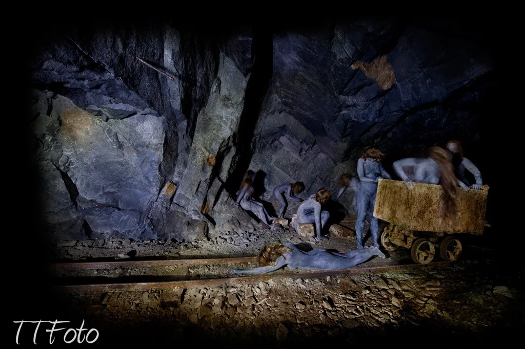 Som lovet, her kommer bildet av gruvearbeiderne. Noen har kalt de smurfene. De er malt på kroppene for å matche fargene i fjellet. Det er egentlig bare 4 kvinner, jeg har tatt meg den kunstneriske frihet å legge flere bilder i lag for å få illusjonen om at det er flere. Jeg gjør selvfølgelig ikke det på reportasje eller ren natur, og er alltid helt åpen om at jeg manipulerer. Bildet er belyst med lommelykt, det gir et spennende og variert lys.